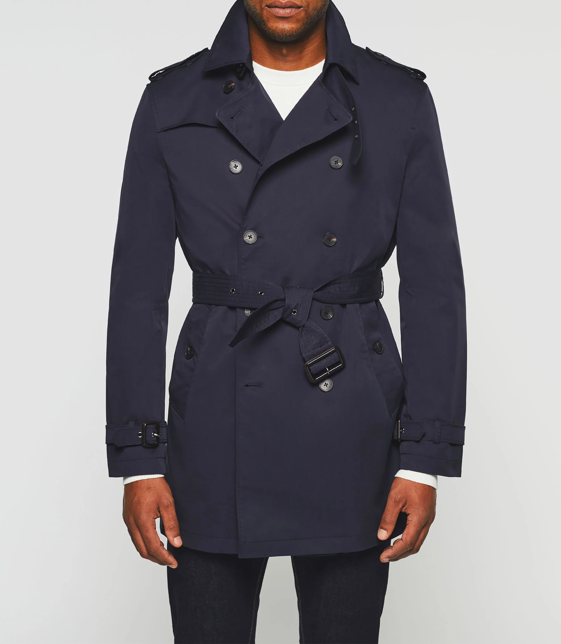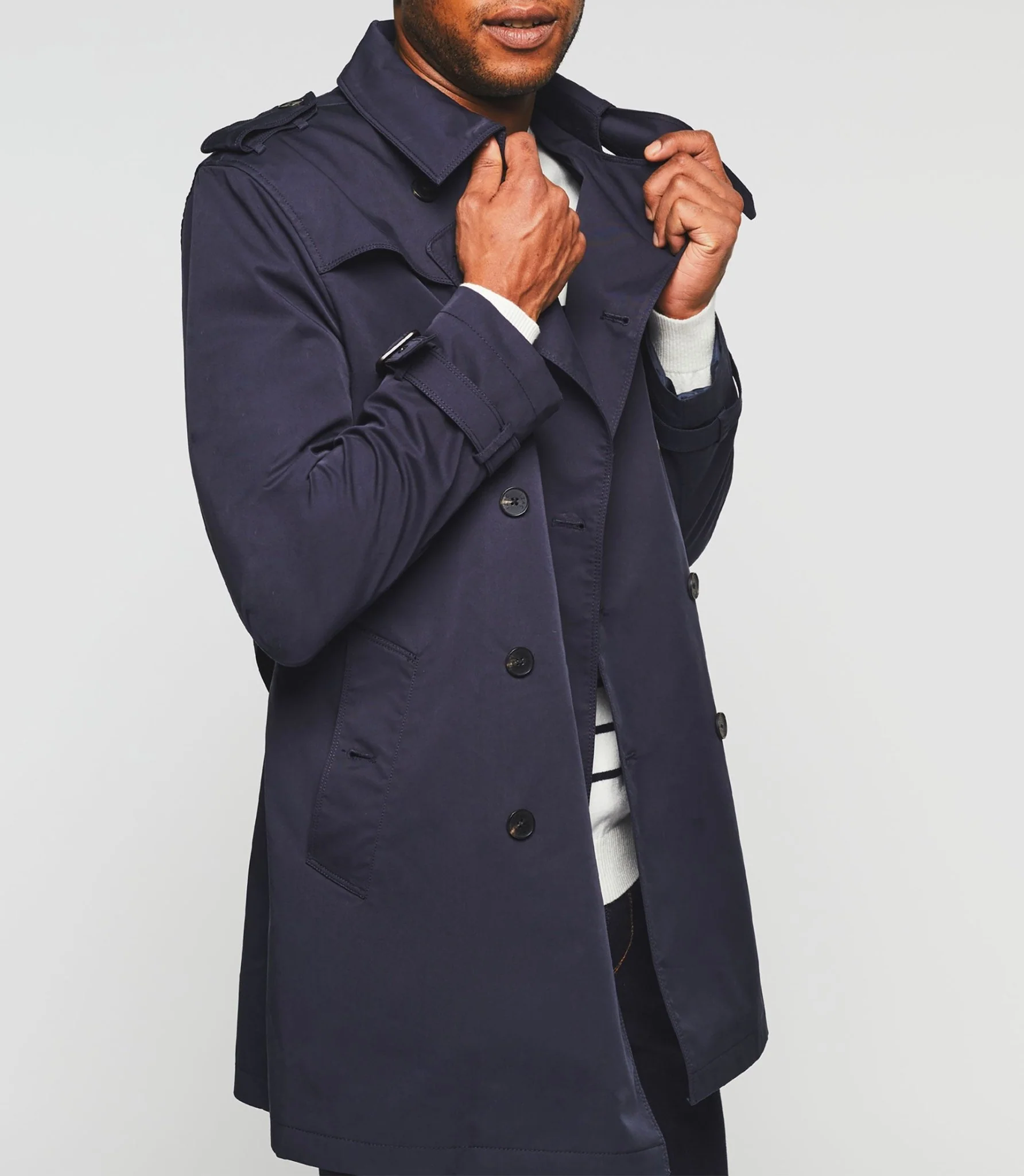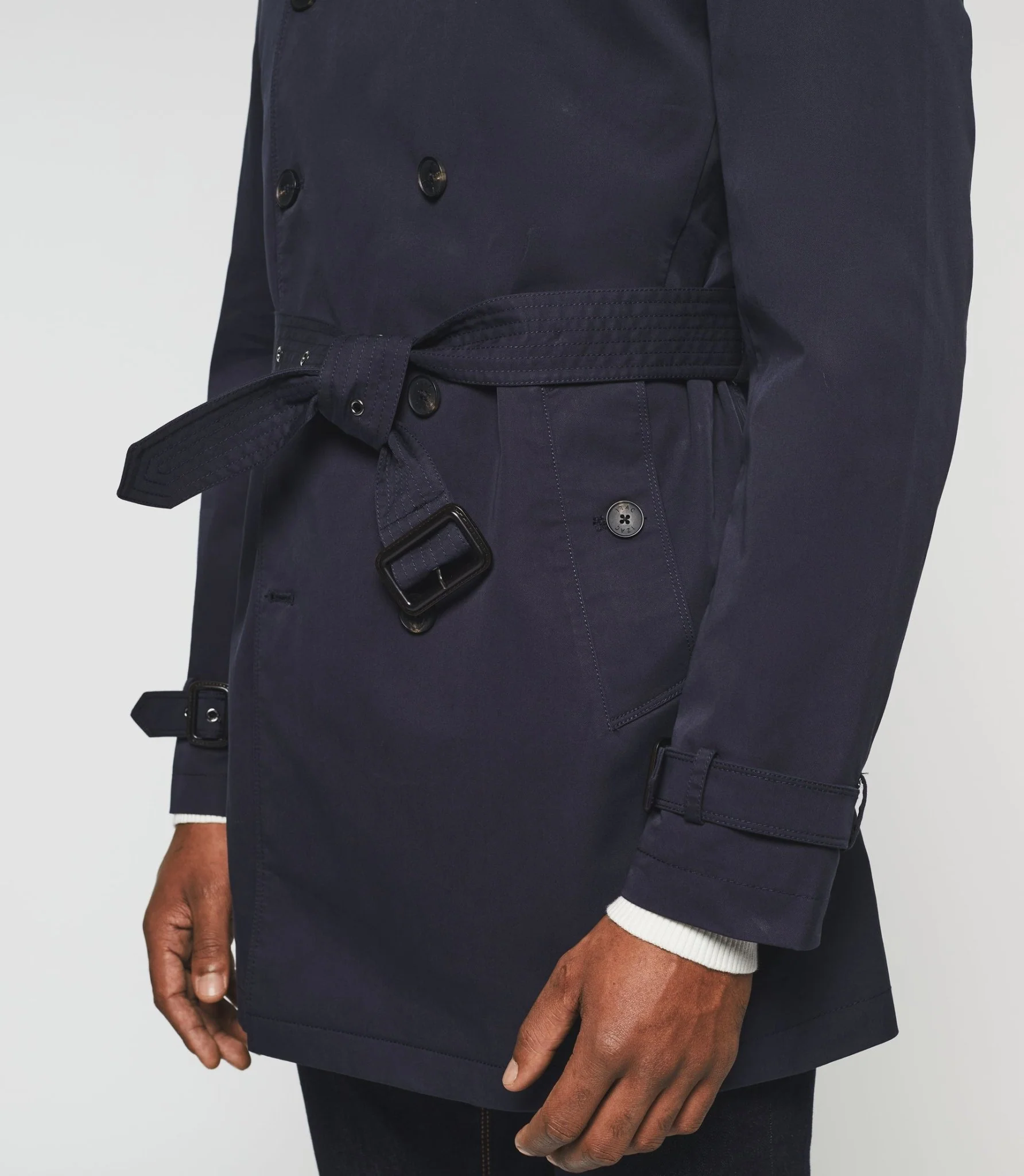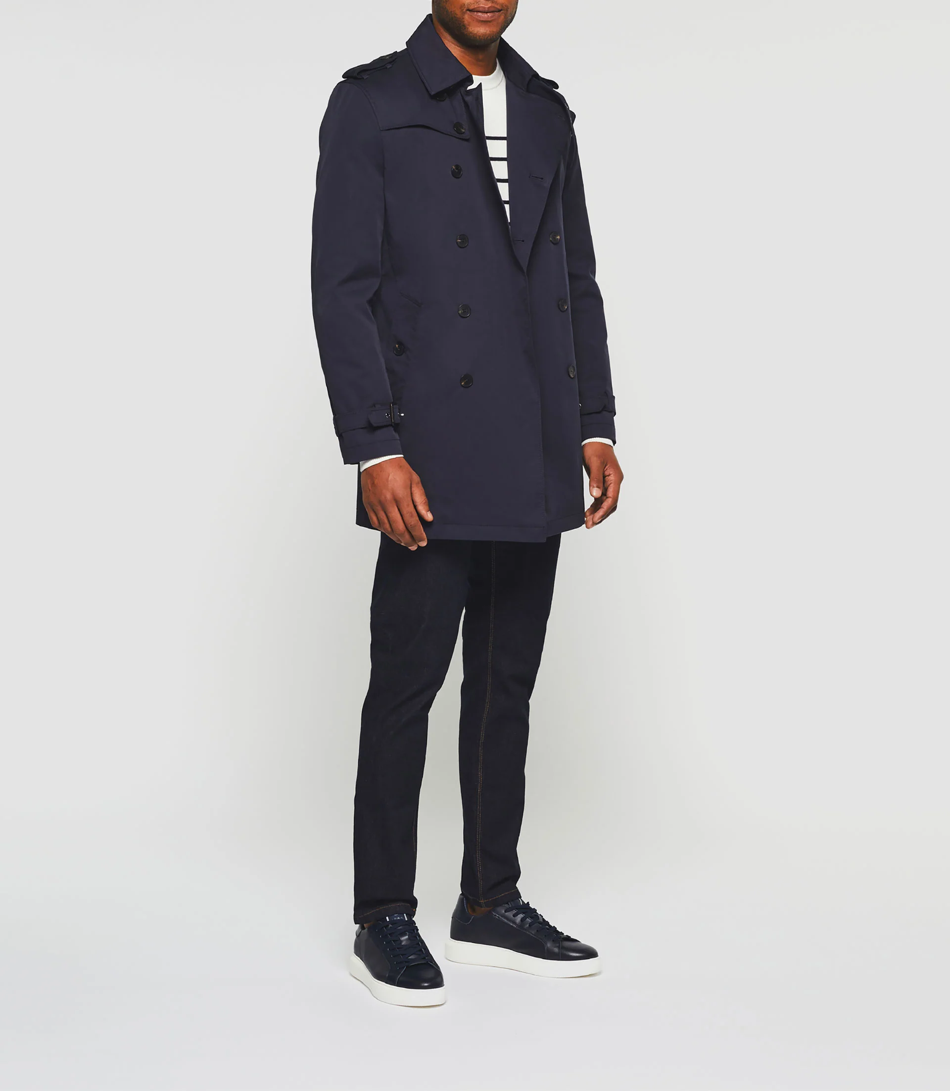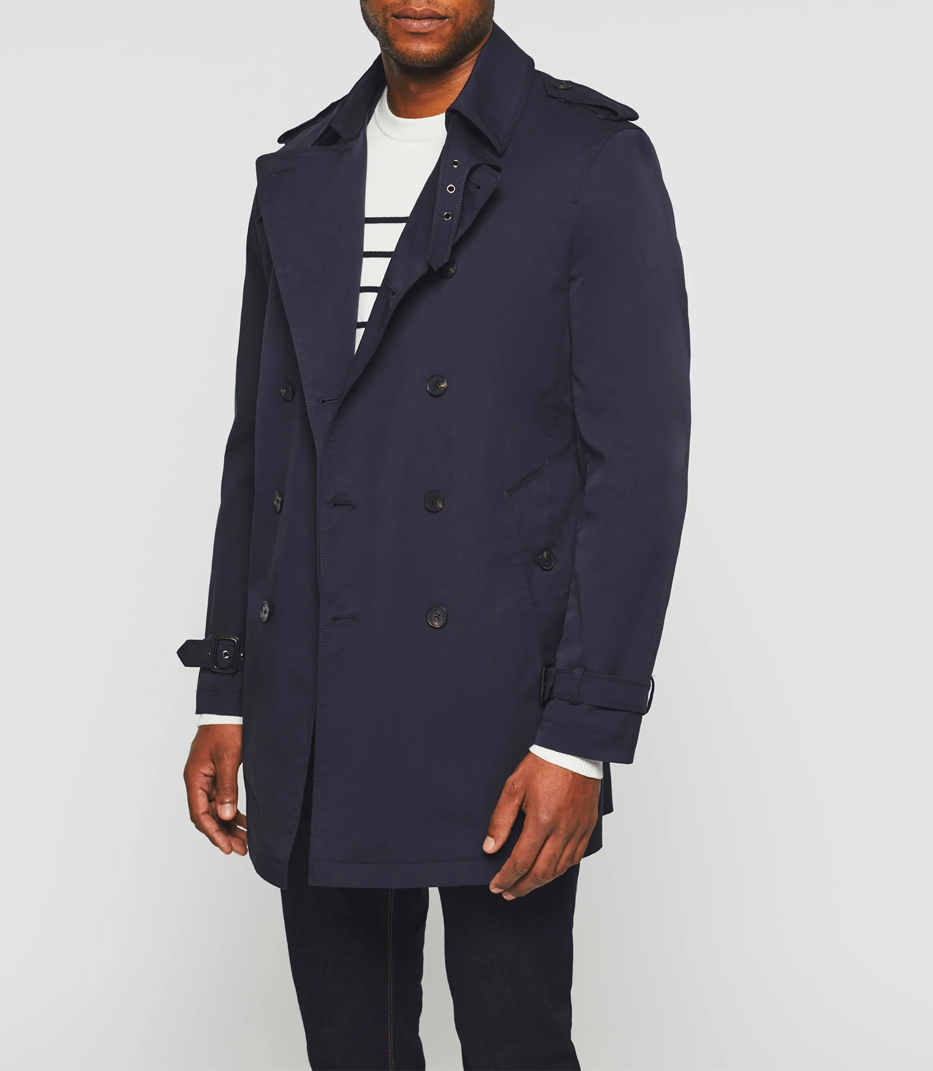 Trench à fermeture croisée et boutonnée.