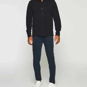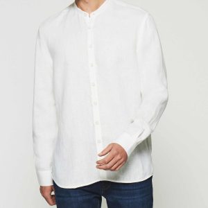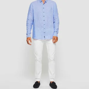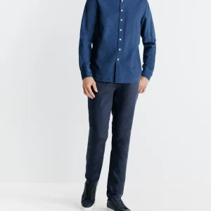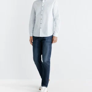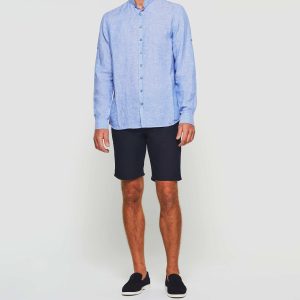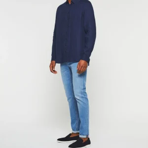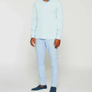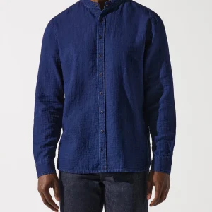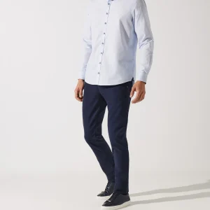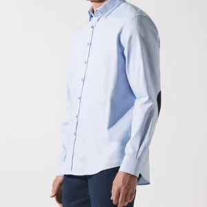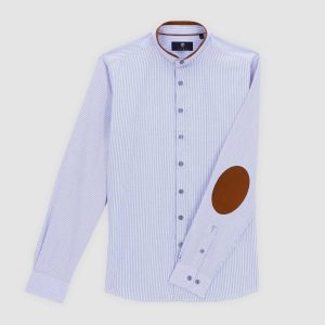 Chemise col mao à coudières bleu ciel et marine JOYBT