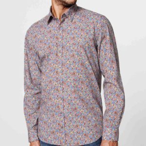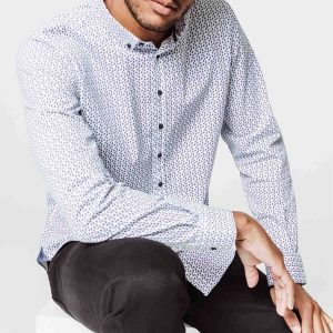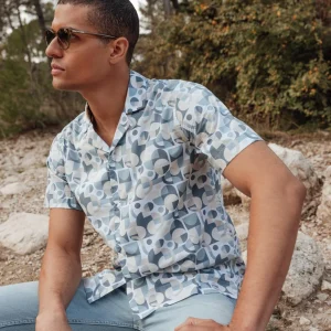 Chemise droite imprimée à coudières blanche et kaki JORGE