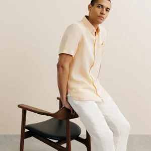Chemise manches courtes 100% lin orange