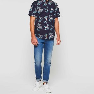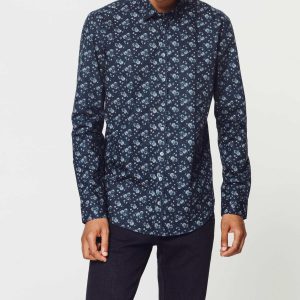 Chemise Motif Roses Marine