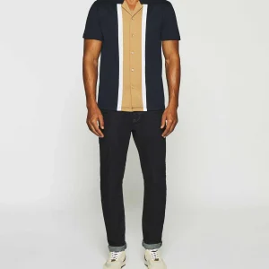 Chemise manches courtes en jersey marine et camel KAMI