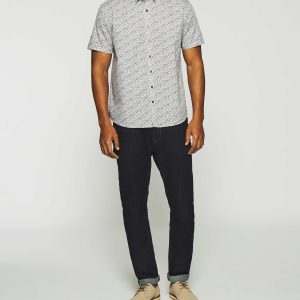 Chemise manches courtes à imprimé blanche et bleue KIRANBT