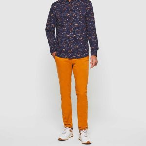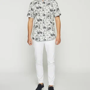 Chemise à imprimé palmier manches courtes blanche et marine KAMILLE