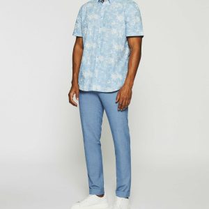 Chemise à imprimé palmier manches courtes ciel et blanche KAMILLE