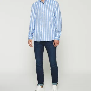Chemise à imprimé manches courtes blanche et bleue KAITO