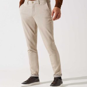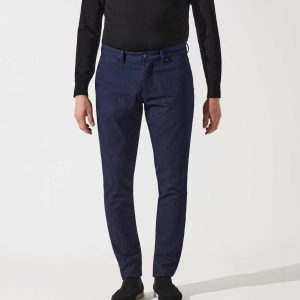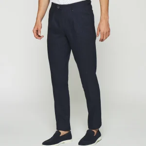 Pantalon chino à rayures en lin bleu marine PLAISANCE