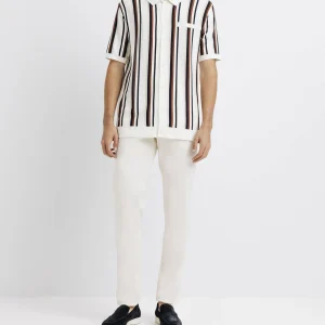 Polo en maille rayé écru