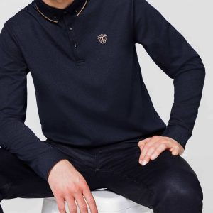 Polo jacquard manches longues marine « Cris »