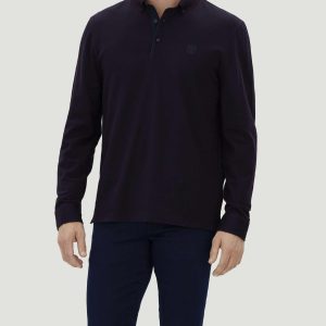 Polo jacquard à manches longues bordeaux « Camelia »