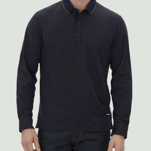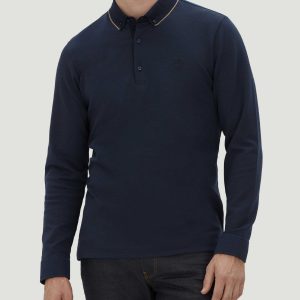 Polo jacquard manches longues marine « Colin »