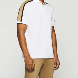 Polo uni manches courtes blanc et camel GABIN