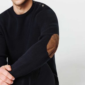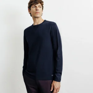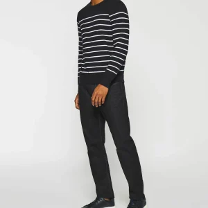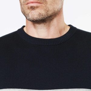 Pull marinière col rond en coton cachemire marine et écru DAYMON
