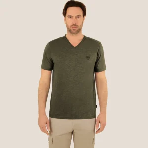 T-shirt col V kaki