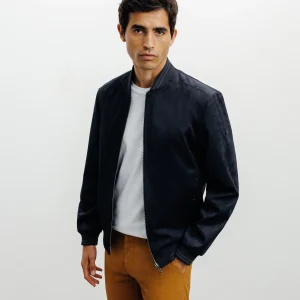 Blouson col officier en suède marine MALWEN