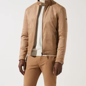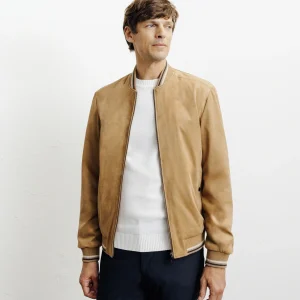 Blouson col officier en suède beige MALWEN