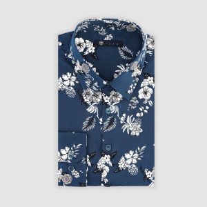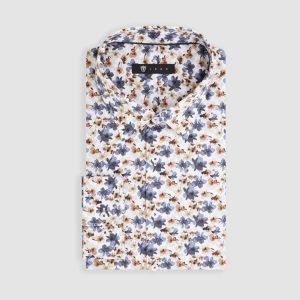Chemise à imprimé floral blanc-marine « Demis »