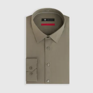 Chemise en popeline stretch kaki « Malte »