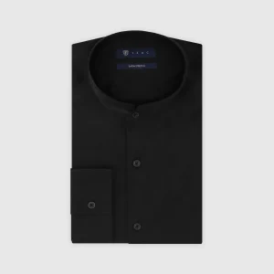 Chemise col mao en satin noire
